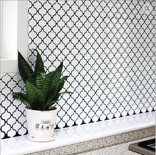 If you are lost on what Tic Tac Tiles are…let me fill you in. They are peel and stick wall tiles that come in pre-sized sheets of 10″x10″ or 12″x12″. I know what you’re thinking..tacky, cheap, and unsanitary. That’s what I was thinking too when I thought about putting vinyl on my kitchen wall (I mean..I’m trying to move AWAY from the 1970’s) , but I did my research and was thoroughly impressed! They are thick, realistic looking, and when they are up you really can’t tell the difference between real ceramic and vinyl tile. Literally all I did was wipe my wall down with all purpose cleanser and stick these babies up! They can also go over existing (smooth) backsplash if you had some you want to cover up.